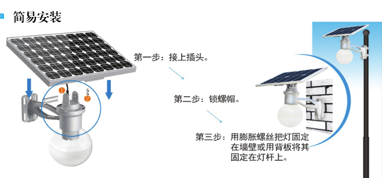 LED太陽能路燈不需要電纜的鋪設(shè):在安裝太陽能路燈時,只需要一個水泥基座,然后用螺絲在法蘭盤上固定即可,省去了大量的綜合成本。源碼太陽能智慧路燈的安裝更是簡單方便,只需一把螺絲刀,一個扳手就能完成,而且也方便了后期的修理維護。