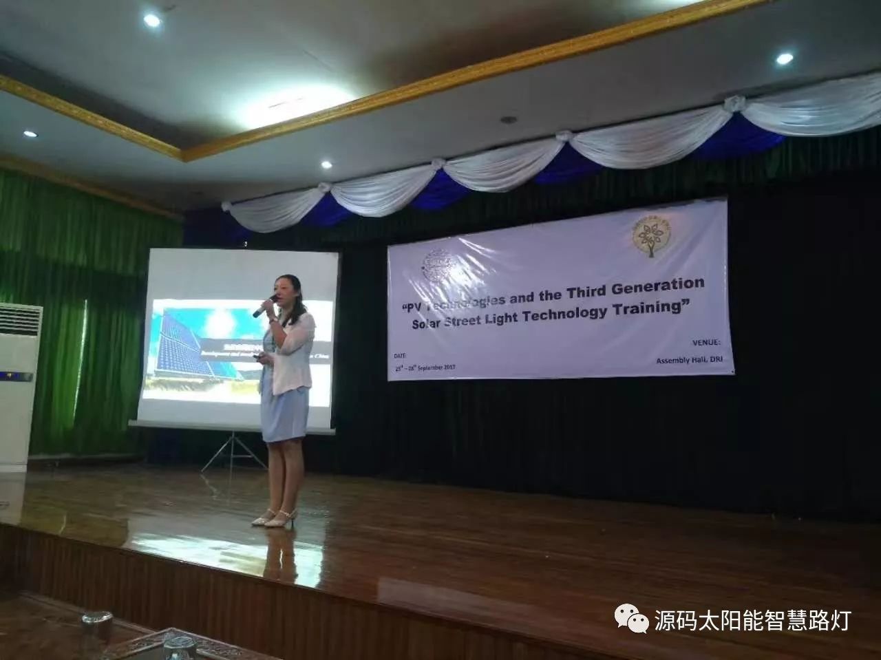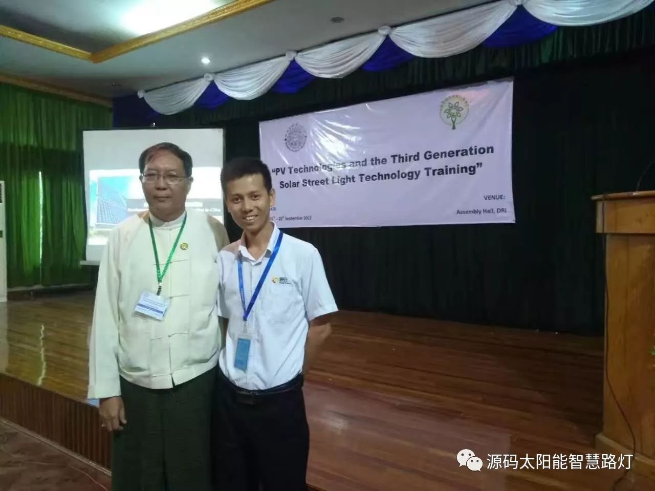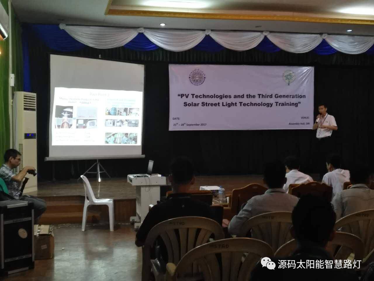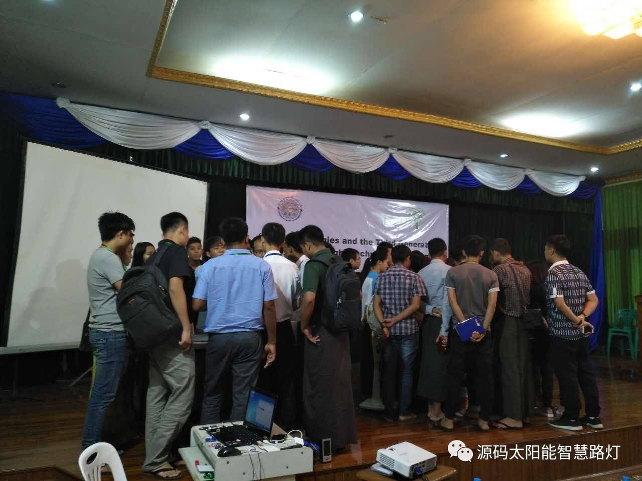 9月25日-9月28日,在云南省人民政府和云南省商務(wù)廳支持下,由云南省綠色能源行業(yè)協(xié)會和緬甸教育部舉辦的光伏應(yīng)用技術(shù)培訓(xùn)會在仰光順利召開,此次會議的目的旨在加強(qiáng)中緬兩國的光伏應(yīng)用技術(shù)交流,展示先進(jìn)的光伏應(yīng)用產(chǎn)品,為兩國的光伏技術(shù)提升營造一個(gè)良好的契機(jī)。其中源碼太陽能智慧路燈代表行業(yè)目前最先進(jìn)的光伏應(yīng)用技術(shù)與產(chǎn)品, 被作為培訓(xùn)嘉賓邀請參到此次會議做相關(guān)技術(shù)的講解與交流。