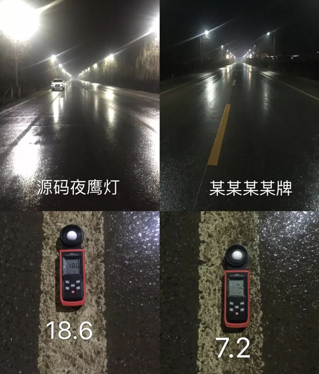 同一道路不同標(biāo)段下源碼夜鷹燈與某牌太陽能路燈對(duì)比