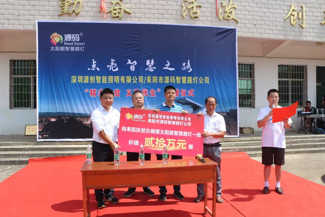 儀式現(xiàn)場,源碼王總和耒陽源碼周總向哲橋鎮(zhèn)紅星村與黎明村無償捐贈(zèng)一批源碼太陽能智慧路燈,王總表示“源碼將始終肩負(fù)責(zé)任,在提供好產(chǎn)品的同時(shí),懷著感恩的心,繼續(xù)用我們最大的努力為精準(zhǔn)扶貧貢獻(xiàn)力量。”