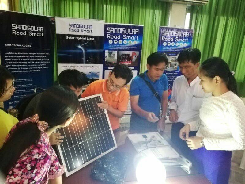 近期,在云南省人民政府和云南省商務(wù)廳支持下,由云南省綠色能源行業(yè)協(xié)會(huì)和緬甸教育研發(fā)創(chuàng)新司舉辦的光伏應(yīng)用技術(shù)培訓(xùn)會(huì)在仰光順利召開(kāi),此次會(huì)議旨在加強(qiáng)中緬兩國(guó)的光伏應(yīng)用技術(shù)交流,展示先進(jìn)的光伏應(yīng)用產(chǎn)品,為兩國(guó)的光伏技術(shù)提升營(yíng)造一個(gè)良好的契機(jī)。其中源碼太陽(yáng)能智慧路燈代表行業(yè)目前最先進(jìn)的光伏應(yīng)用技術(shù)與產(chǎn)品,被作為培訓(xùn)嘉賓邀請(qǐng)到此次會(huì)議,為緬甸仰光科技創(chuàng)新司、農(nóng)村發(fā)展部、農(nóng)業(yè)大學(xué)、曼德勒科技大學(xué)、緬甸電力部、緬甸能源部、緬甸農(nóng)村灌溉部等人員進(jìn)行相關(guān)技術(shù)的講解與交流。