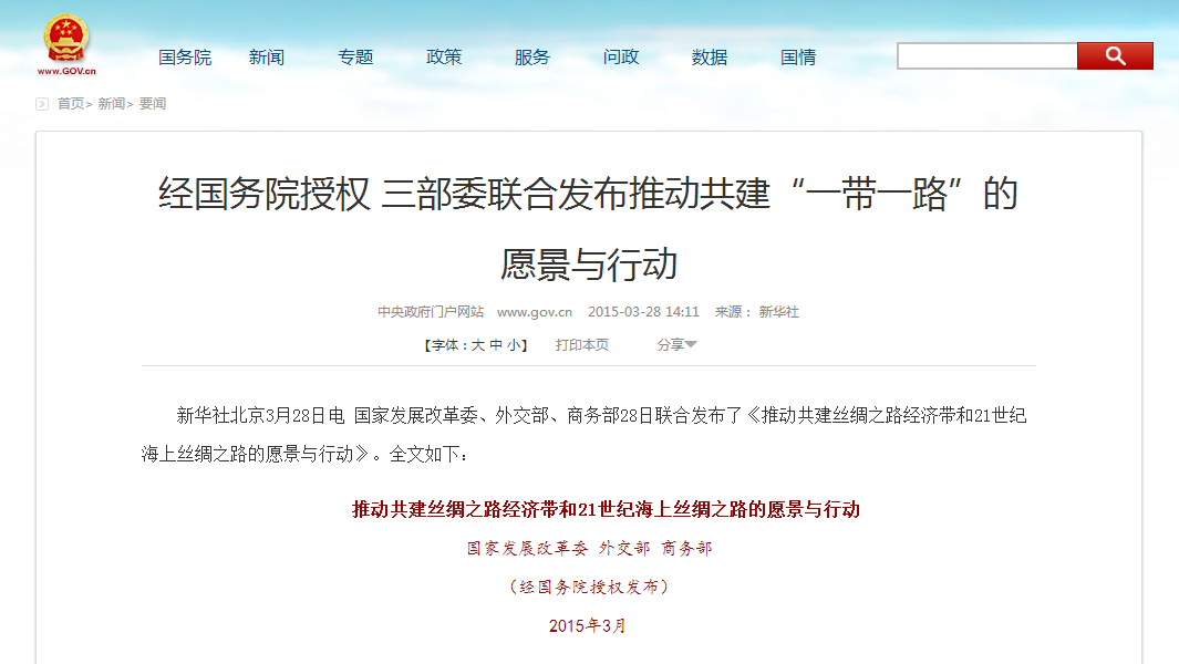 2015年3月28日,國(guó)家發(fā)展改革委、外交部、商務(wù)部聯(lián)合發(fā)布了《推動(dòng)共建絲綢之路經(jīng)濟(jì)帶和21世紀(jì)海上絲綢之路的愿景與行動(dòng)》。沿線國(guó)家基礎(chǔ)設(shè)施建設(shè)達(dá)8萬(wàn)億規(guī)模。